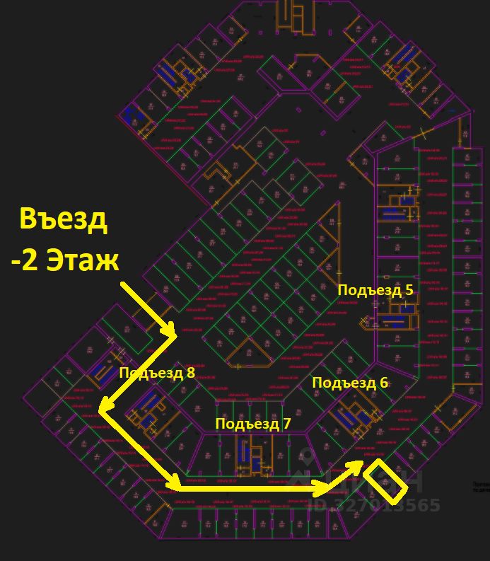 Машиноместo 152-153 (машино место) площадью 18,8 м2 с удобным заездом, расположенное на минус 2-oм этаже 6-я Радиальная улица, 3к10 (напротив лифта 6 подъезда).
