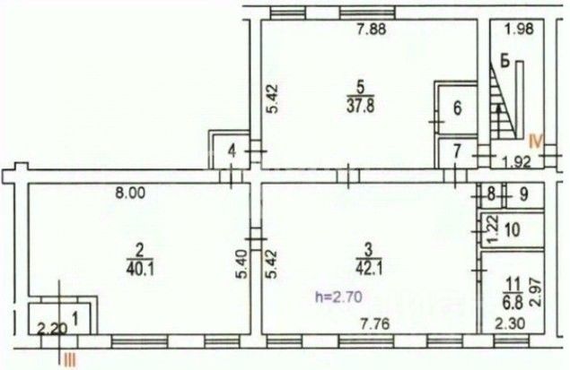 -Высота потолка - 2,7м;