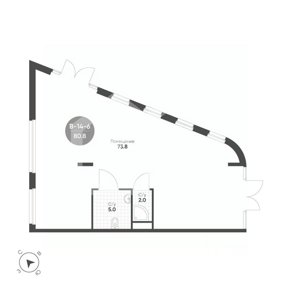 1110497-s . Предлагаем помещение свободного назначения формата street-retail в ЖК "Shagal", площадью 80.8 кв. м, расположенное на первом этаже 7-этажного жилого дома. 4 очередь, 2 этап, корпус 6. Без комиссии для покупателя.