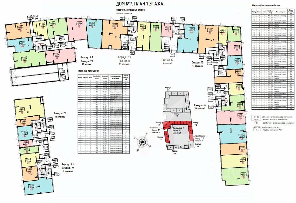-ЖК состоит из 7 корпусов переменной этажности (от 7 до 22 этажей);
