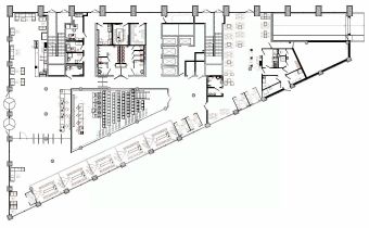 - Планировка открытая: площадь типового этажа - 1 688 кв. м., 1 426 рабочих мест. 10 переговорных комнат и конференц-зал на 105 человек.