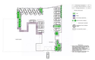 Земельный участок (пятно застройки + 17 машино мест) в аренде до 2049 года.
