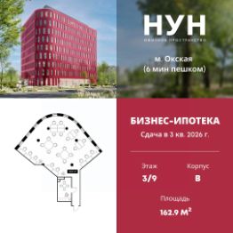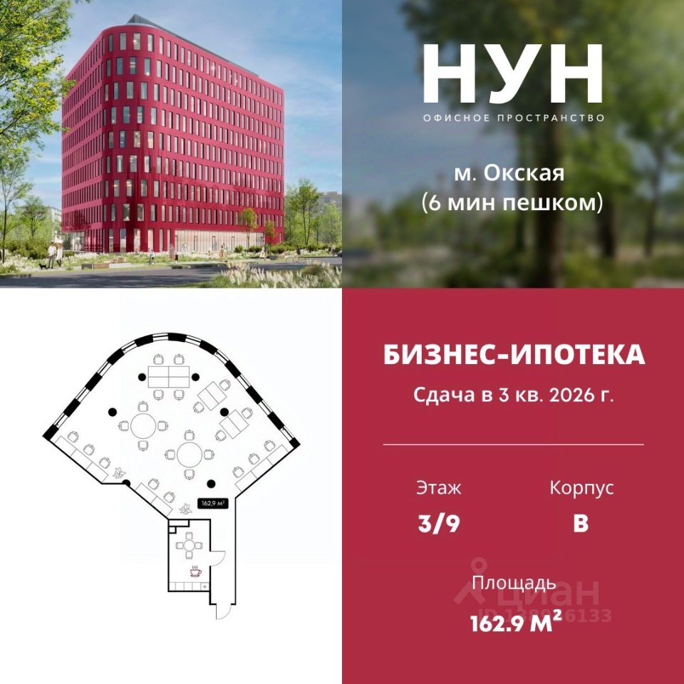 Продается офисное помещение площадью 162.9 м² в бизнес-центре НУН от застройщика Доминанта. ЮВАО, м. ОкскаяСрок реализации проекта - 3 квартал 2026 года. НУН - современный многофункциональный бизнес-центр с выразительным обликом, располагающийся в динамично развивающемся районе Москвы. Гостей и сотрудников бизнес-центра встречает яркое лобби с высокими потолками и витражными окнами. На первом этаже располагаются вендинговые автоматы, банкоматы и копировальный центр, где можно распечатать документы. Также здесь находится ритейл с магазинами и кафе. Для мероприятий, презентаций или совещаний в здании имеется конференц-зал. Особая деталь проекта — это эксплуатируемая кровля с озеленением и уютная лаундж-зона с видами на город. Характеристики объекта: - Класс "В" - Функциональные планировки от 63 м2 до 159 м2 - Высота потолков 3,6 м - Окна высотой 3 м с функцией проветривания - Отделка - 9 этажей - 4 пассажирских лифта - Центральное кондиционирование, отопление и водоснабжение - Приточно-вытяжная вентиляция - Круглосуточная охрана - IP -видеонаблюдение; - Подземный паркинг. Расположение: - 6 минут пешком до ст. м. "Окская"; - 7 минут на машине до СВХ; - 8 минут на машине до МКАД; - 10 минут на машине до ЮВХ; - 12 минут на машине до ТТК; - 16 минут пешком до ст. м. "Рязанский проспект"; - 20 минут пешком до D3 "Вешняки".Звоните прямо сейчас, чтобы узнать подробности!