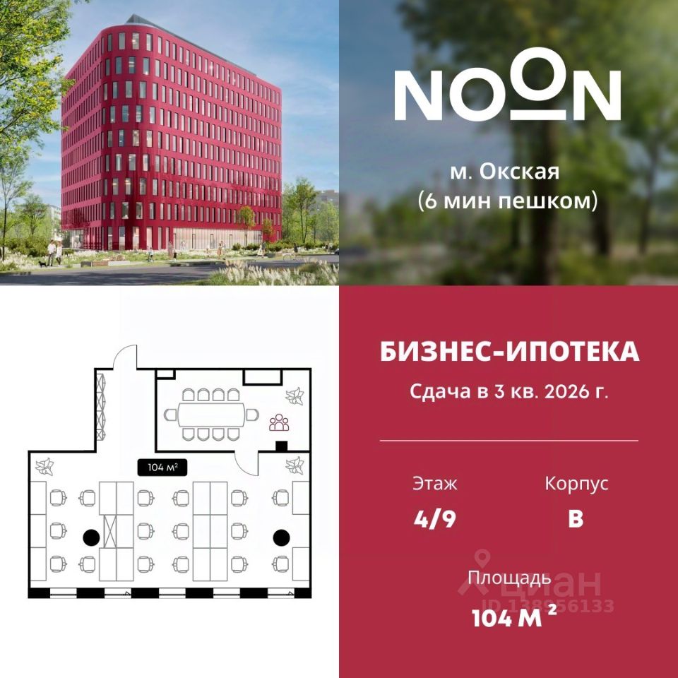Продается офисное помещение площадью 104 м² в бизнес-центре NOON от застройщика Dominanta.