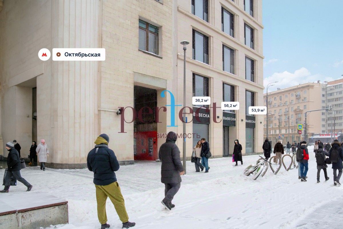 Предлагаются в аренду и на продажу помещения на Ленинском проспекте, ЦАО, г. Москва. Аренда и продажа помещений у метро. Шаговая доступность от ст. метро "Октябрьская" — 0,1 минута пешком. Отличная пешеходная и транспортная доступность. Высокий рекламный потенциал и возможность размещения вывесок. Прямая видимость от метро.