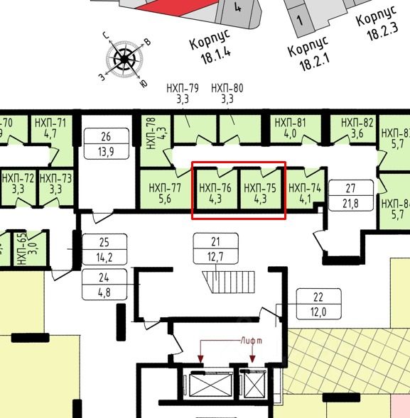 2. Номер помещений: 75 и 76.