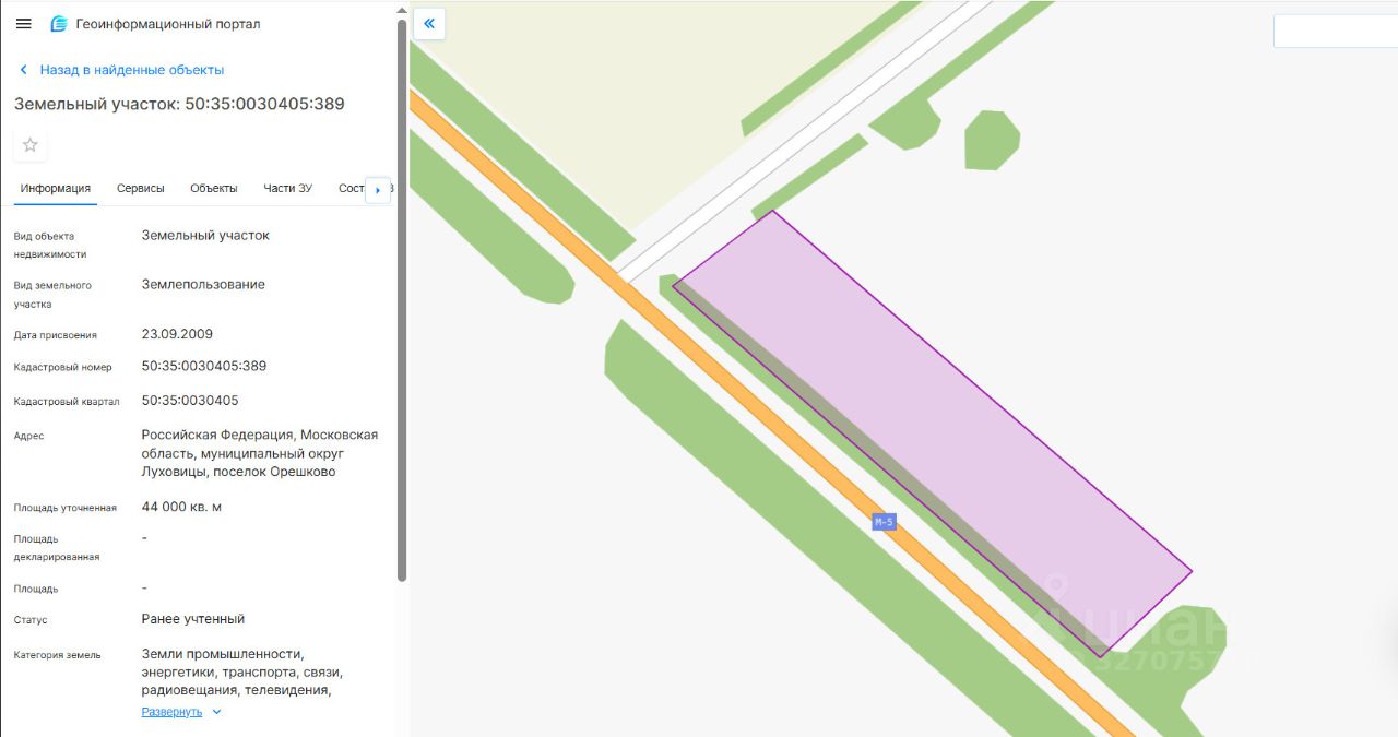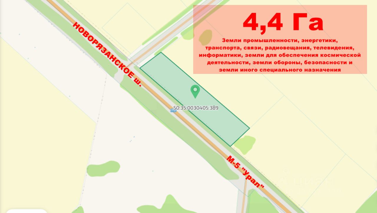 Земельный участок 4,4 Га (44000 кв.м) на первой линии оживленного Новорязанского шоссе (трасса М-5 Урал).
