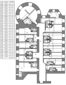 Отдельный обособленный вход на этаже через подъезд (доступ 24/7), два пассажирских лифта, в помещении имеется дополнительный пожарный выход по лестнице во двор здания. В помещении всего 22 панорамных 2,5-метровых окна, высота потолка почти 4 метра. Изюминкой помещения является 5-метровый балкон в идеально круглой комнате.