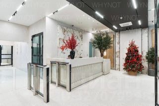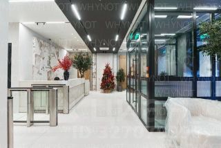- Открытые террасы на верхнем этаже здания, панорамное остекление офисных помещений;