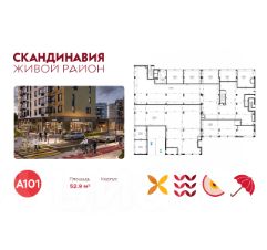 Продается торговое помещение площадью 52.90. на 1-м этаже ЖК "Скандинавия".