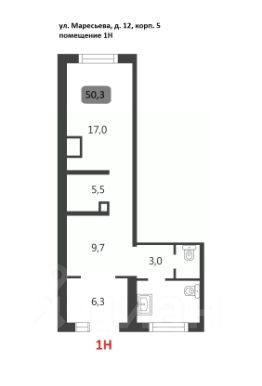 Коммерческое помещение площадью 50.3 м², расположено по адресу: г. Москва, улица Маресьева, 12к5, помещение 1Н, район Некрасовка. Объект занимает 1 этаж в здании с этажностью 14 этажей. Помещение без отделки, свободного назначения, имеет отдельный вход.