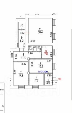 Высота потолков: 3,3 м