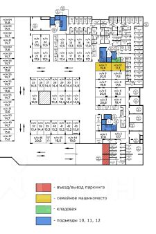 • Семейное машиноместо выделено на схеме жёлтым, кладовая зелёным