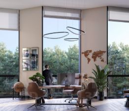 - На первых этажах офисных зданий просторные лобби с комфортной зоной ожидания, супермаркет, торговые помещения, отделения банков и сервисных служб, фитнес-студия