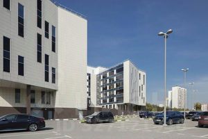 Здание оборудовано подземным паркингом на 60 мест и наземным - на 70 машино-мест.