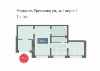 Аукцион в электронной форме по продаже нежилого помещения, закреплённого за КП "УГС" на праве оперативного управления, по адресу: г. Москва, ул. Маршала Ерёменко, д. 1, корп. 1, помещение 31Н, этаж 1, площадью 68,80 кв. м, кадастровый номер 77:16:0010105:39753