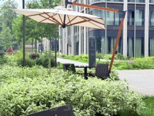 Выход в огороженный красивый двор. Красивые лобби- можно принимать гостей, устраивать встречи!