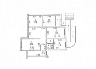 1 этаж 17 этажного дома. (2008г постройки) Полузальная планировка.