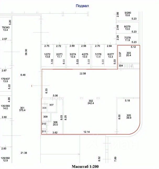 689482. Предлагаем помещение свободного назначения с арендатором "Автомойка" в ЖК "На Циолковского", площадью 349.2 кв. м, расположенное в подвале 18-этажного жилого дома. Без комиссии для покупателя.