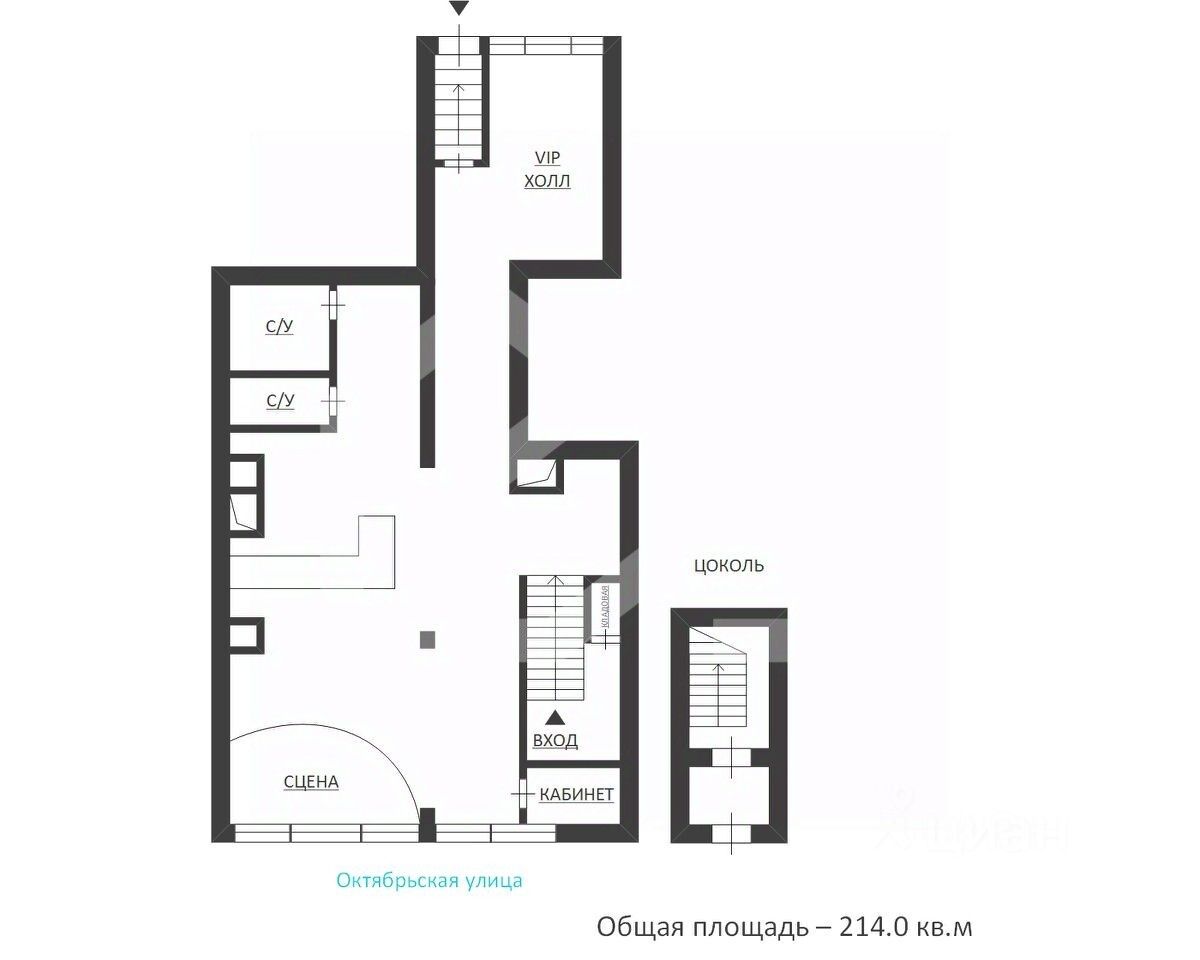 -планировка: зальная, VIP-зона, кабинет, подсобное помещение, 2 санузла;