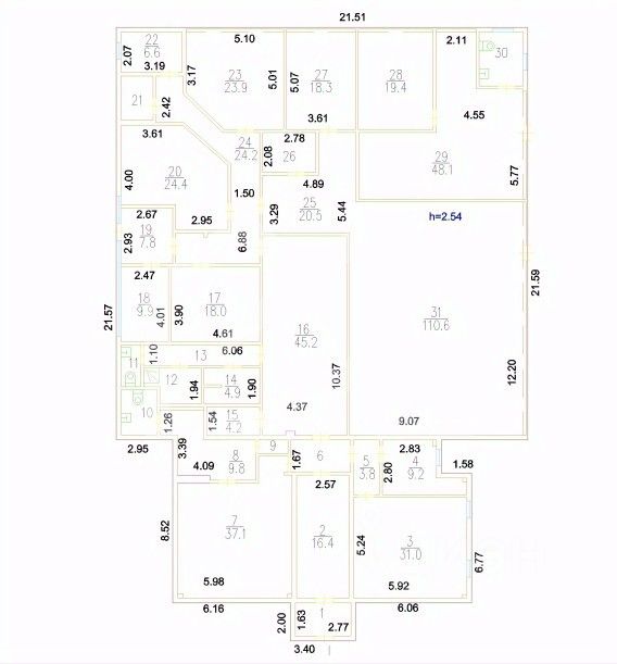 -высота потолков: 3.4 м.