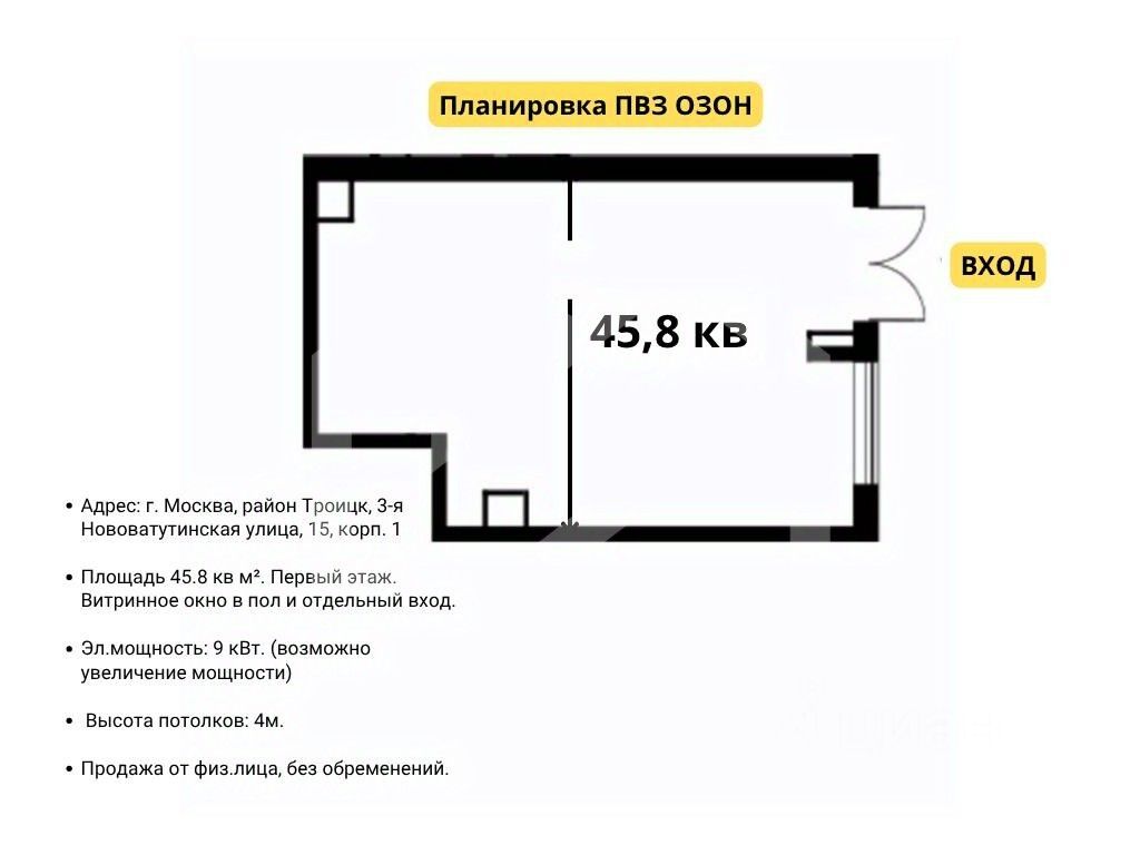 1083730-gab . Предлагаем помещение свободного назначения формата Street Retail с арендатором пункт выдачи "Ozon", площадью 45,8 кв. м, расположенное на первом этаже жилого дома в ЖК "Новые Ватутинки, мкр. Центральный". Без комиссии для покупателя.