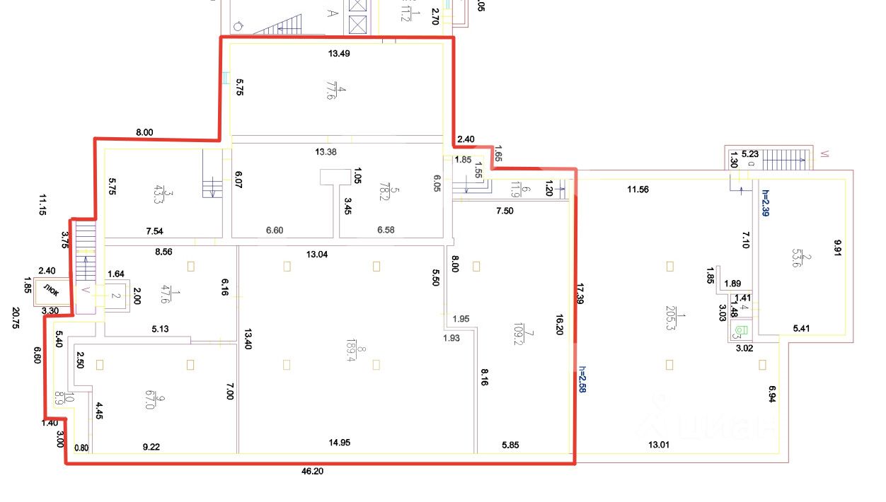 852603. Предлагаем помещение свободного назначения с арендатором "Ozon Fresh", площадью 635.9 кв. м, расположенное на цокольном этаже 12-этажного жилого дома. Без комиссии для покупателя.