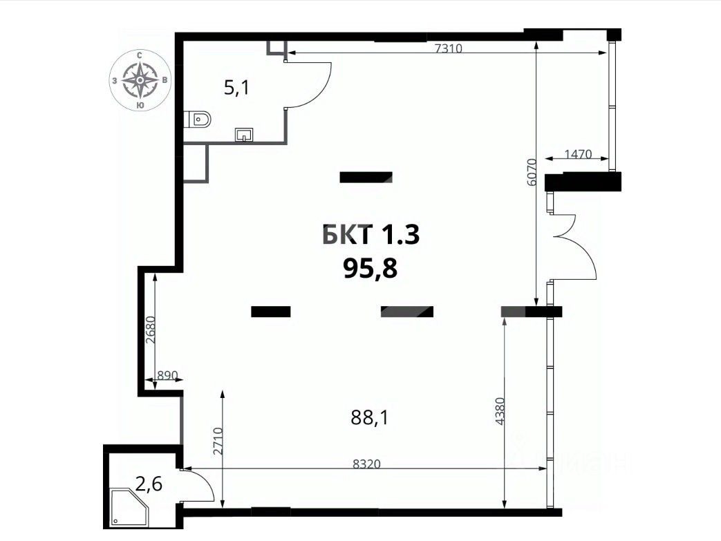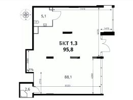 889544-f . Предлагаем к приобретению помещение свободного назначения формата Street Retail в ЖК "1-й Саларьевский", площадью 95.8 кв. м., расположенное на первом этаже 24-этажного жилого дома. Корпус 2, секция 1. Без комиссии для покупателя.
