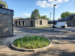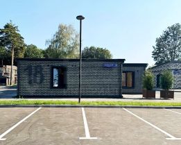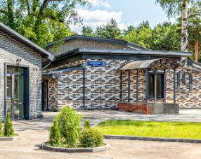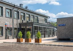 Отделка фасадов выполнена панелями с имитацией клинкерного кирпича. Дополнительно на территории организованы зоны отдыха, также дополнительно имеется возможность для организации летних веранд и кафе.