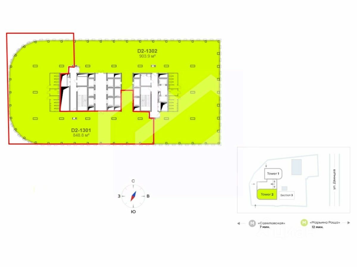 644721-o . Предлагаем офисное помещение площадью 848,5 кв. м, расположенное на 13 этаже в строящемся бизнес-центре "STONE Савеловская"
