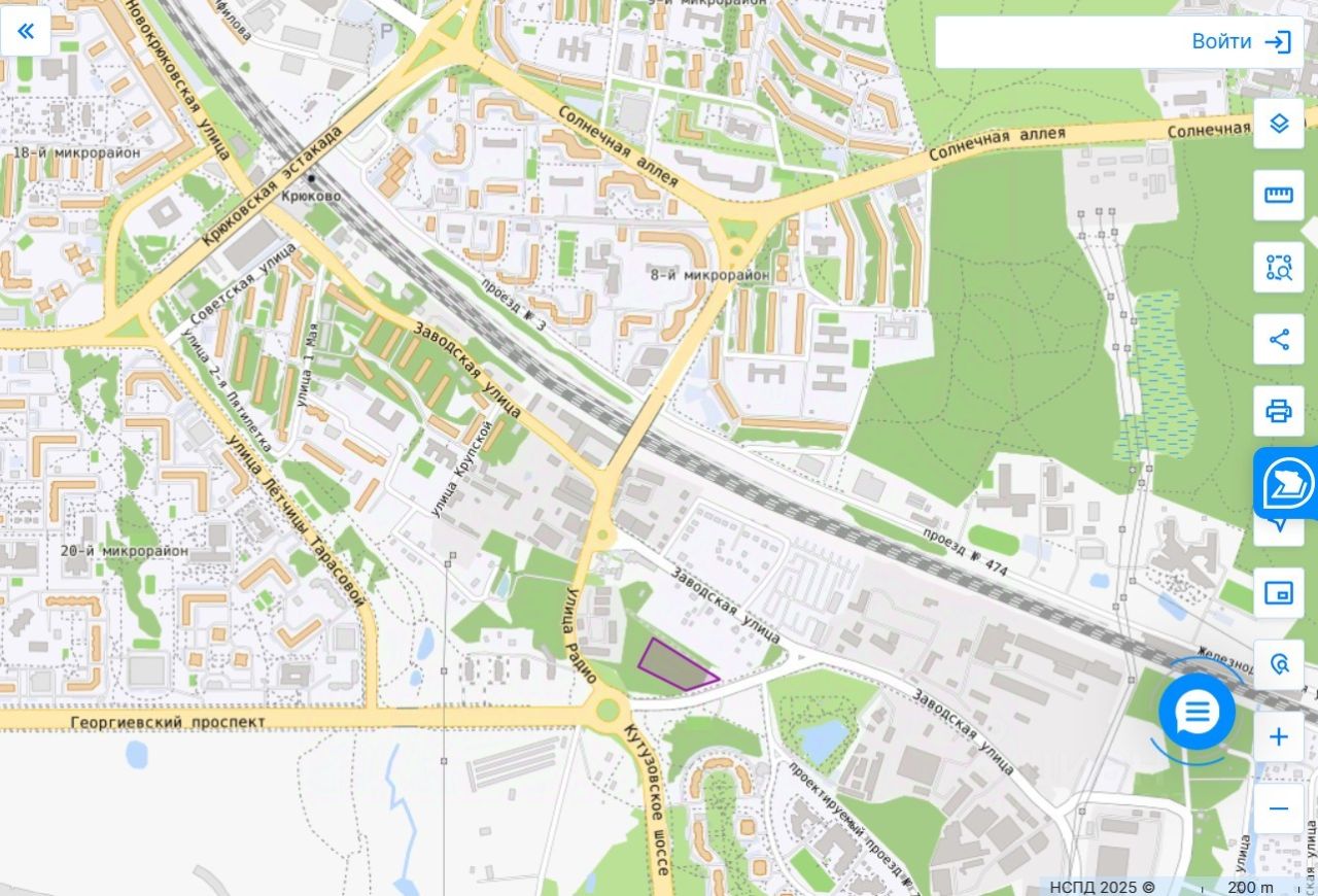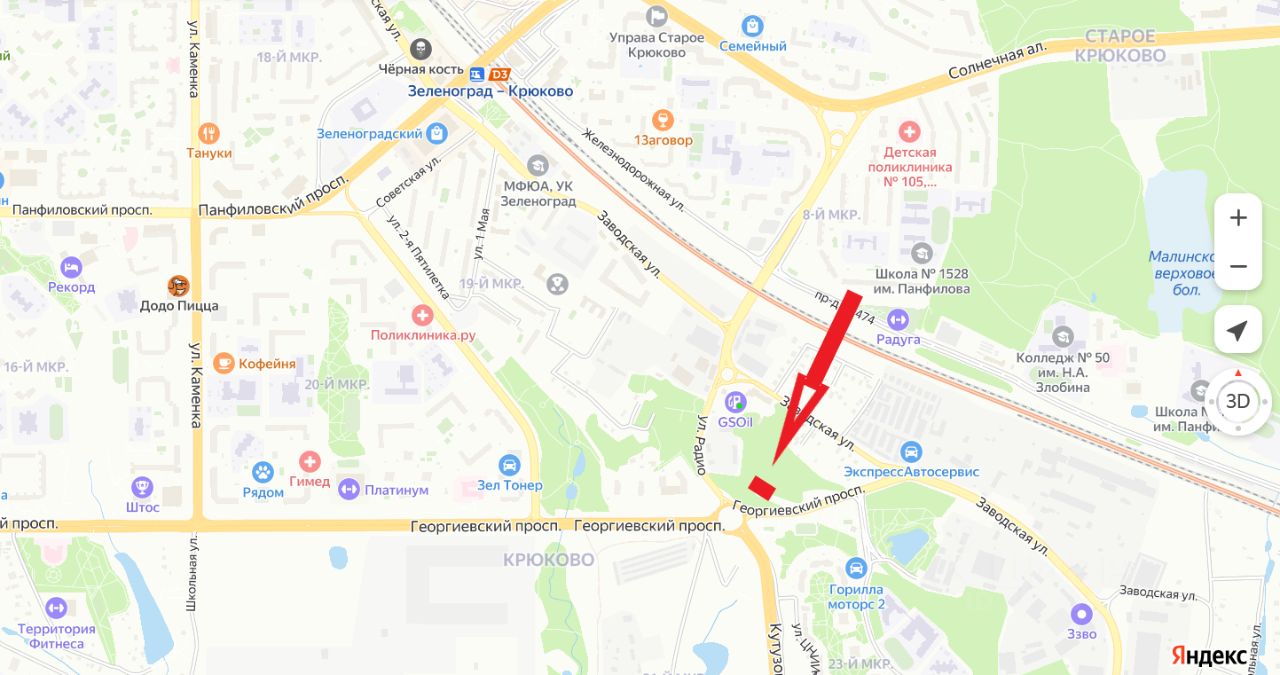 Земельный участок расположен в активно застраиваемом районе Крюково г. Зеленограда. На кольцевой развязке на пересечении дух основных магистралей - Георгиевского проспекта, ул. Радио и Кутузовского шоссе. В непосредственной близости от автомобильной дороги, на въезде в Зеленоград со стороны Пятницкого шоссе. На земельный участок будет организован заезд и выезд с главной автомобильной дороги. До станции D3 Зеленоград Крюково от участка 1,5 км.