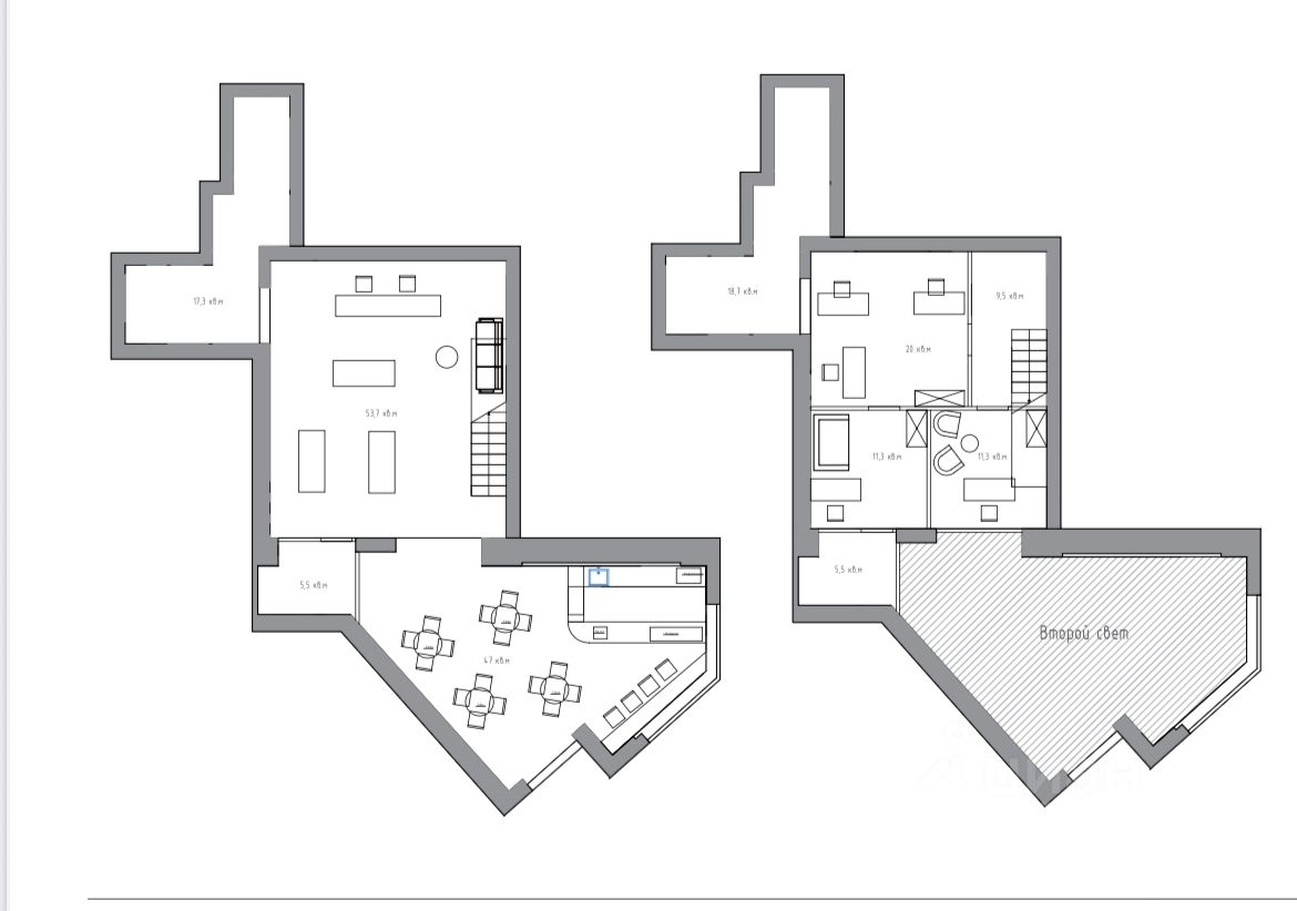 Первый (четвертый) этаж (стилобат). Высота потолков 6 метров — возможность устройства антресольного этажа. Открытая планировка. Отдельный вход с фасада со стороны Генерала Дорохова. Витринные окна.