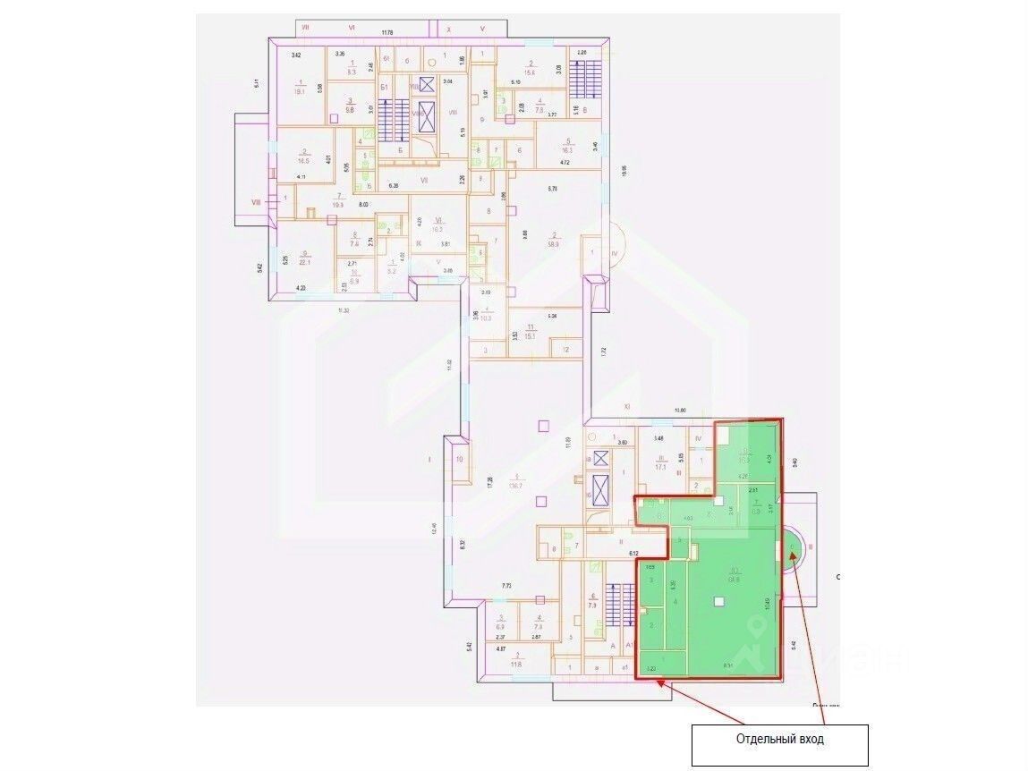1126709 . Предлагаем помещение свободного назначения формата street-retail в ЖК "Ривер хаус", площадью 132.9 кв. м, расположенное на первом этаже 18-этажного жилого дома. Без комиссии для покупателя.