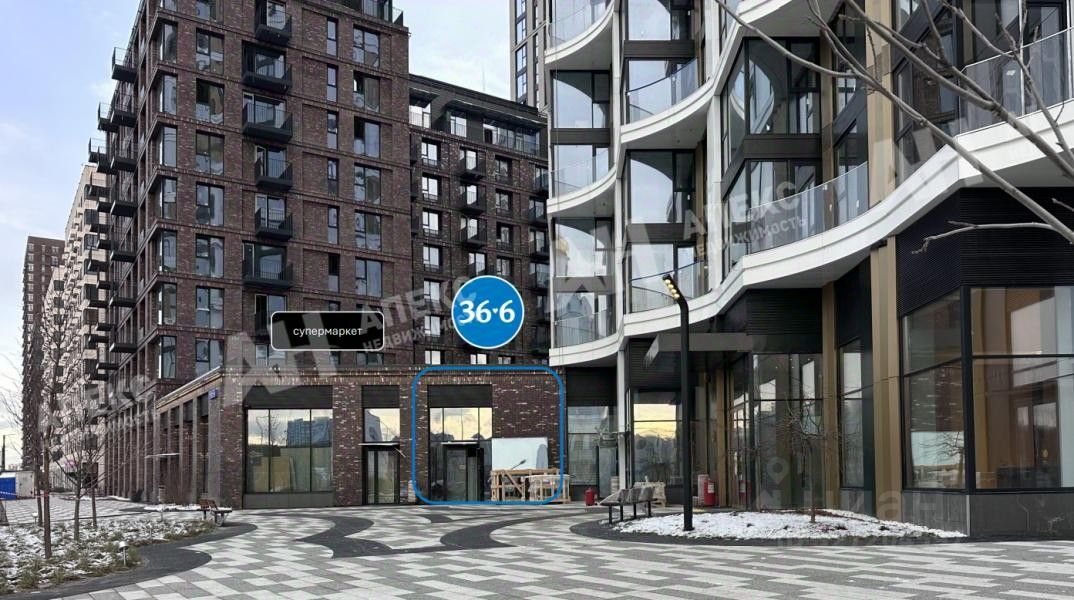 Помещение примыкает к супермаркету (соседняя дверь), что усиливает трафик.