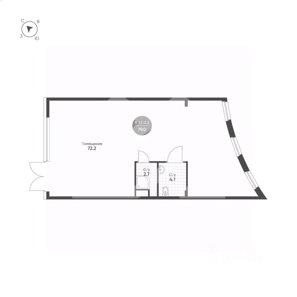 1070863-s . Предлагаем помещение свободного назначения формата street-retail в ЖК "Shagal", площадью 79 кв. м, расположенное на первом этаже 9-этажного жилого дома. 3 очередь, 2 этап, корпус 1. Без комиссии для покупателя.
