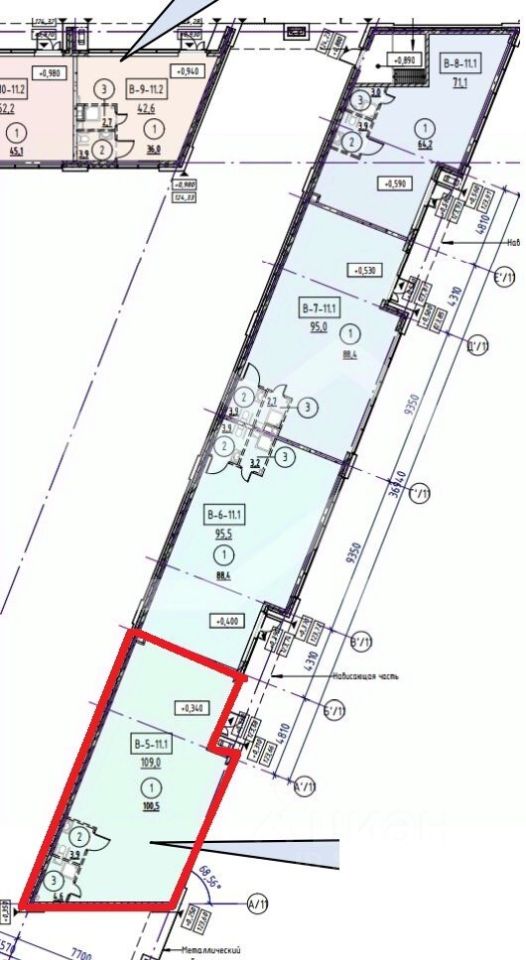 1110365-s . Предлагаем помещение свободного назначения формата street-retail в ЖК "Shagal", площадью 109 кв. м, расположенное на первом этаже 22-этажного жилого дома. 3 очередь, 6 этап, корпус 10. Без комиссии для покупателя.
