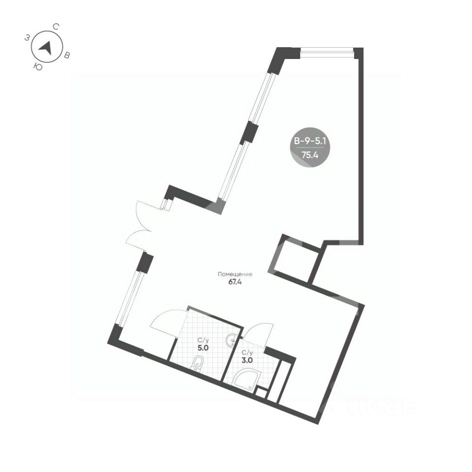 1110491-s . Предлагаем помещение свободного назначения формата street-retail в ЖК "Shagal", площадью 75.4 кв. м, расположенное на первом этаже 27-этажного жилого дома. 4 очередь, 2 этап, корпус 5. Без комиссии для покупателя.