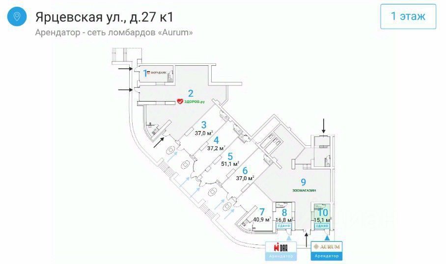 Лот: 38445. Помещение свободного назначения формата Street Retail в ЗАО Москвы. 1 минута пешком до станции метро Молодёжная. Отличная пешеходная и транспортная доступность. Расположено в крупном сложившемся жилом районе с высокой плотностью застройки и развитой инфраструктурой. Арендатор: AURUM сеть ломбардов МАП: 284 752 руб.