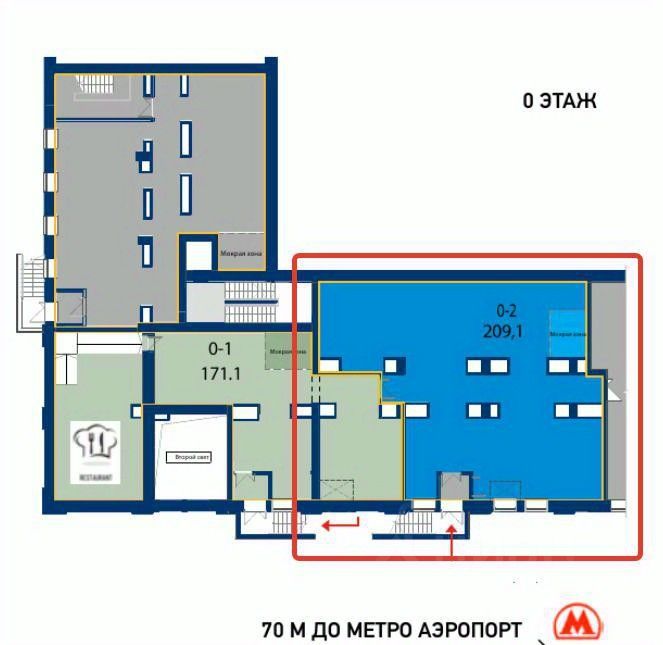 Лот: 38450. Помещение свободного назначения формата Street Retail в AIR-SPACE - проекте преображения 4х этажного административно - офисного здания построенного в 1983-ом году. 1 минута пешком до станции метро Аэропорт. 1-я линия Ленинградского проспекта. Активный пешеходный и автомобильный трафик.
