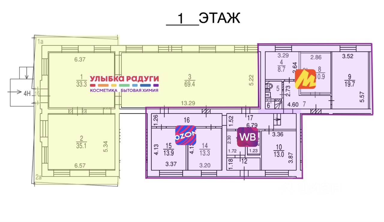 ГАБ(готовый арендный бизнес) Улыбка радуги 117,3 м2, первый этаж, отдельный вход.