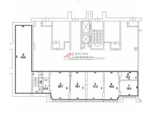 Помещение 327 м2 занимает первый этаж 184 м2 и антресоль 85,6 м2 - из них 43,4 м2, открытая планировка, четыре мокрых точки, несколько отдельных входов с фасада, высота потолка 3 м, окна по фасаду. Электрическая мощность 46 кВт. Парковка перед фасадом. Место для размещения рекламы.