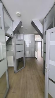 Офис занимает полэтажа и имеет индивидуальный вход,хороший ресепшен,переговорную комнату и санузлы, установлены стеклянные перегородки,есть душевая кабина.