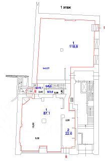 1-й этаж S=243,7 м2., h=3,77 м.