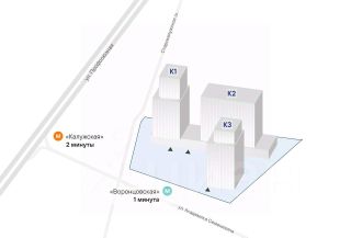 Идеальное расположение: Находится в непосредственной близости от сразу двух станций метро — Калужская и Воронцовская (Большая кольцевая линия). Время в пути до любой из них — всего 1 минута пешком. Это гарантирует огромный ежедневный поток людей.