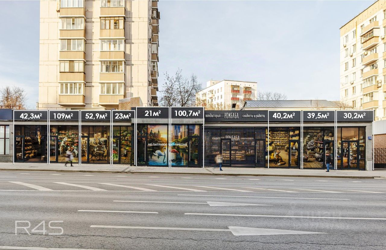 Торговое помещение располагается на первой фасадной линии Красной Пресни на 1 этаже отдельностоящего здания. Локация отличается активным туристическим потоком, интенсивный пешеходным и автомобильным трафиком. В 3-х минутах пешком располагается станция метро "Краснопресненская", а в 5 минутах станция "Улица 1905 года". Район отличается многообразием культурных достопримечательностей и мест активного скопления людей: в пешей доступности от здания Московский зоопарк, Московский планетарий, сталинская высотка на Кудринской площади, известный Римско-католический Кафедральный собор, пространство "Центр Зотов" и другие достопримечательности Москвы.