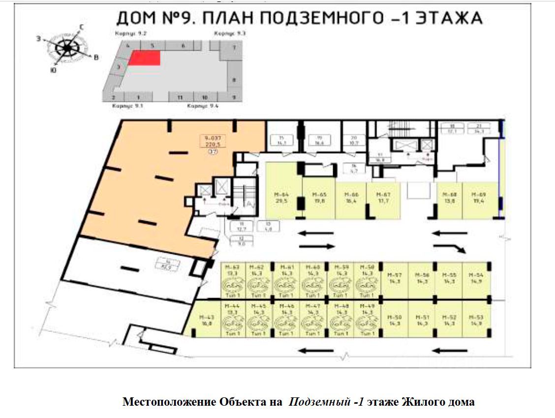 Продам большое машино-место 65 в ЖК "Прокшино", -1 этаж, площадь 19,8 м.кв.