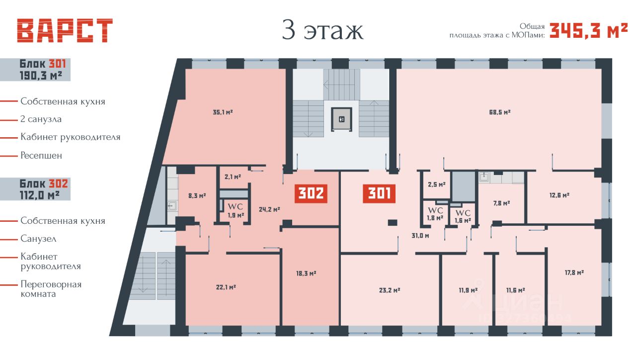 В каждом офисном блоке готовый ремонт, предусмотрены кухонные зоны, с/у и гардеробы. Есть блоки с собственной зоной приема посетителей и свободным входом, удобно для клиентского бизнеса с большой проходимостью. А таже блоки с выделенной зоной для руководства. На 1 этаже помещения под ритейл или ПСН с отдельными входами.