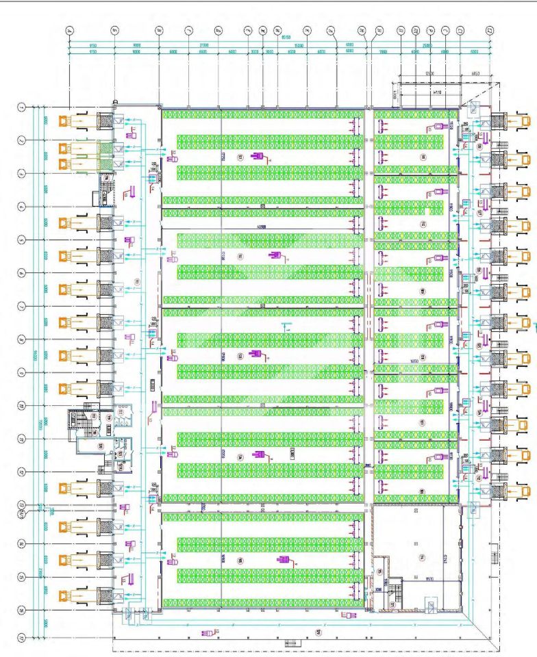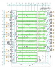 5 больших камер с габаритами 41 х 18, по 756 м2, высота 12 м, рабочая 10,5 м (t=-24 С/0 С +8 С).