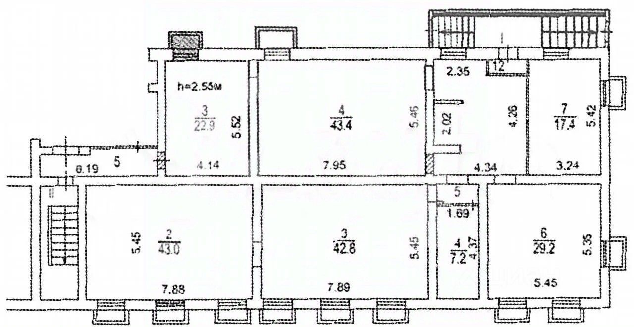-высота потолков: 2.55 м.