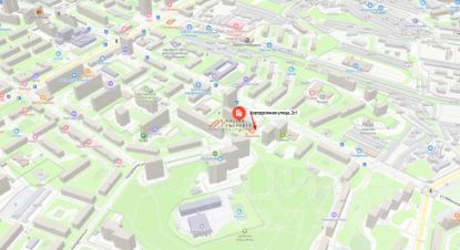 Помещение 113 м2, располагается в подвале с торца жилого дома, открытая планировка, отдельный вход с фасада, высота потолка 2,6 м. Электрическая мощность 20 кВт. Парковка перед фасадом. Место для размещения рекламы.